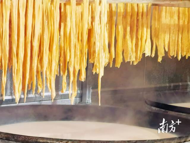 经营一家腐竹加工企业的周序山便是热衷于“古法”的一员,他所在的贝墩镇树华村是本镇最早开始生产腐竹的村庄,产业基础深厚,“小时候大家都还是用这种传统的办法来加工腐竹,成品更香甜也更柔软,比现在的产品更胜一筹。大概在80年代以后,业内因其效率较低逐渐淘汰了这种做法,但那种家乡独有的风味深深地印在了我的脑海里”。