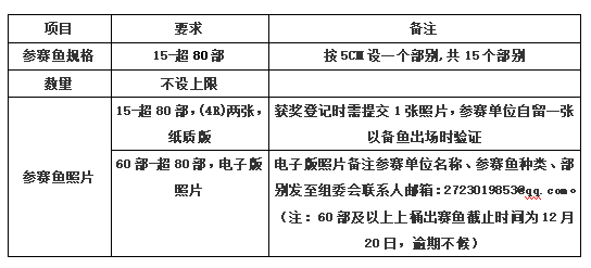 6、参赛锦鲤经大会确认其类别及体长后,不得提出异议和变更; 7、参赛锦鲤须严格遵守分组比赛规定,不得超部参赛,胜出鱼将由主办方聘请合资格的专业人士进行严格复核,一经核实有超部参赛的,一律取消参赛资格,奖项由下席顶上;