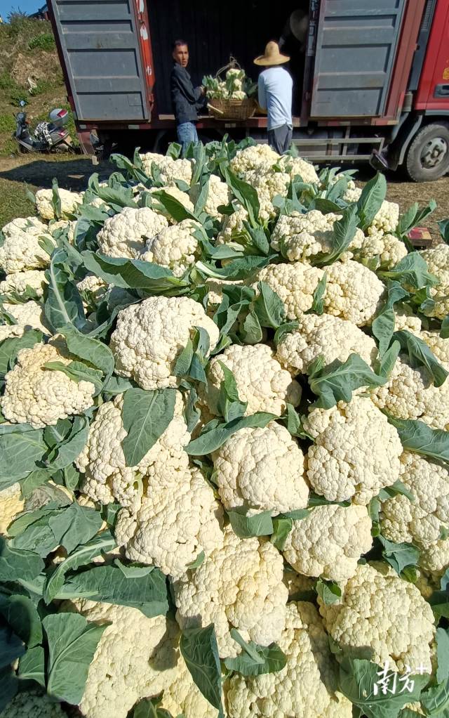 采摘、筛选、称重、包装……正值花椰菜丰收季,阳江市阳春市岗美镇埠滘村的田间地头一派繁忙景象。白色的花椰菜颗颗饱满,与绿油油的叶子相互映衬,它们在竹筐里整装待发,即将被运往阳江市区、茂名、珠三角以及河北等地,抵达消费者的餐桌上。