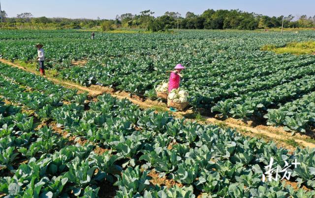 在埠滘村放眼望去,连片的花椰菜构成了绿色的海洋,鲜有空地和丢荒地。“年轻人大部分都外出打工,而种植花椰菜让留在村里的中老年人至少有份稳定的工作,有份可观的收入”,村干部曾便告诉记者,村民实现了在家门口就业,内生动力也得以激发,干劲越来越足。