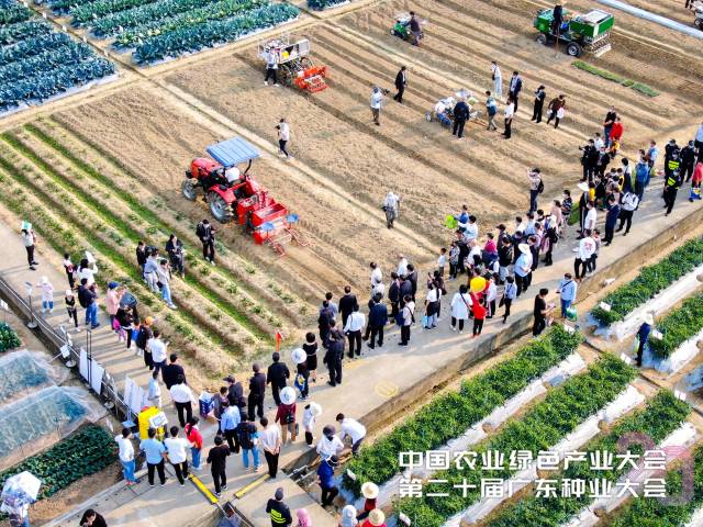 走进农机装备展区,20家农机企业各类农机装备整齐摆放,各自都拿出了看家产品。现场既有蔬菜、水稻生产全程机械化机械作业演示,也有农业机器人等智能化农机装备场景演示。此外,“广东”、“智能”、“绿色”等元素格外显眼,是一场名副其实的农机装备视觉盛宴。