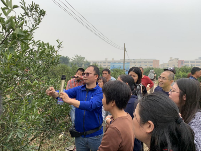 为实施《江门农技推广服务驿站技术支撑项目》关于开展主推技术示范推广、人员培训的要求,12月15日,广东省农业科学院江门分院、江门市农技推广服务驿站、江门市新型职业农民协会在新会大洞村茶枝柑种植基地联合举办茶枝柑采后树体养分与土壤管理培训班,邀请省农科院资环所李国良副研究员进行实地培训。江门市各相关公司和合作社技术骨干、种植户代表等50余人参加现场培训。