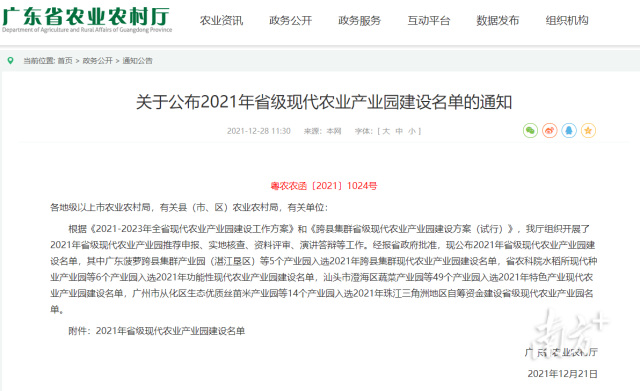 12月28日,广东省农业农村厅正式发布2021年省级现代农业产业园建设名单, 经推荐申报、实地核查、资料评审、演讲答辩等环节,肇庆市怀集县稻蔬产业园(扩容提质)成功入选。