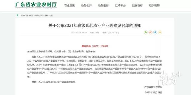 广东省农业农村厅官网公布了《关于公布2021年省级现代农业产业园建设名单的通知》(以下简称《通知》),《通知》指出,根据《2021-2023年全省现代农业产业园建设工作方案》和《跨县集群省级现代农业产业园建设方案(试行)》,广东省农业农村厅组织开展了2021年省级现代农业产业园推荐申报、实地核查、资料评审、演讲答辩等工作。经报省政府批准,现公布2021年省级现代农业产业园建设名单。