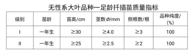 应选用符合茶树种苗国标(GB—11767)中规定I~II级标准苗木。