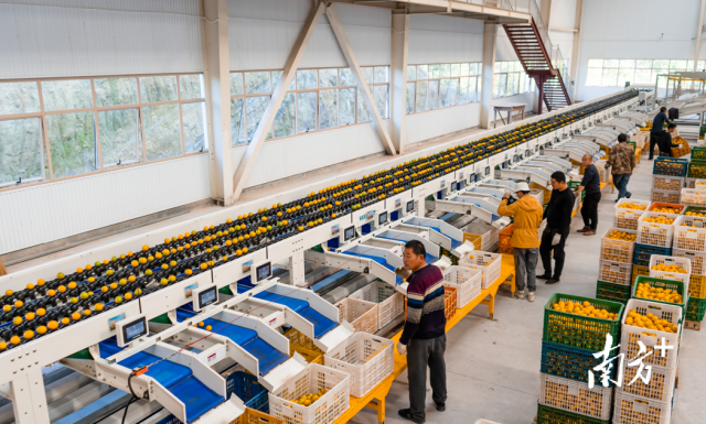 作为仁化贡柑主产区,黄坑镇在种植优化、技术提高和产业化运作方面也出台了一系列政策。2019年,丹霞贡柑品控中心投入应用,助推贡柑产业一体化发展。目前,该品控中心建有国内顶级的4通道智能分选线,是粤北地区首条高精度的柑橘糖度无损检测生产线,每分钟分选贡柑个数可达600个。