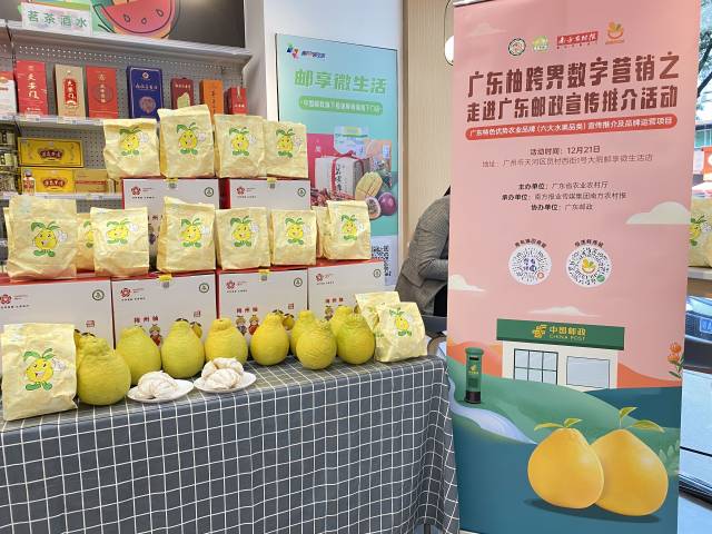 12月21日,由广东省农业农村厅主办,南方农村报社承办,中国邮政协办的广东柚跨界数字营销之走进广东邮政宣传推介活动在广州市天河区线下邮享微生活体验店顺利举行。