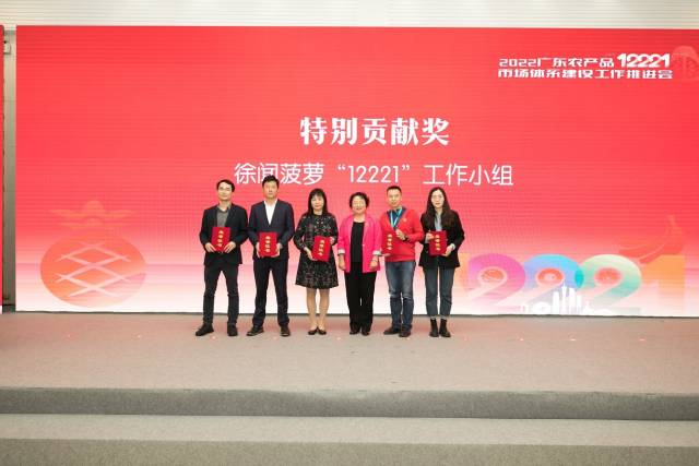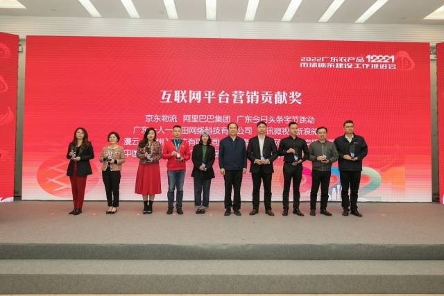 此外,会上为“12221”市场体系建设作出突出贡献的地市政府代表、媒体代表、企业代表、“12221”市场体系建设工作小组等,颁发了广东农产品“12221”市场体系建设“十大优秀案例奖”、“媒体贡献奖”、“渠道贡献奖”、“互联网平台营销贡献奖”、“特别贡献奖”,以表彰他们在农产品产销一线的付出。