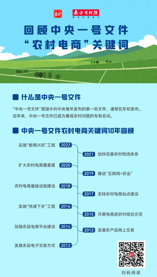 早在2005年,中央一号文件就提出鼓励发展电子商务等新型流通方式,此后,每年的中央一号文件都会对农村电商做出新要求。近10年,中央一号文件有关“农村电商”出现哪些关键词?南方农村报为你盘点。