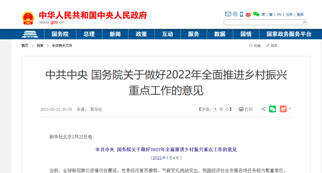 2月22日,中共中央 国务院发布《关于做好2022年全面推进乡村振兴重点工作的意见(2022年1月4日)》(下称《意见》)。《意见》指出,要全力抓好粮食生产和重要农产品供给,大力实施大豆和油料产能提升工程,支持扩大油茶种植面积,改造提升低产林。