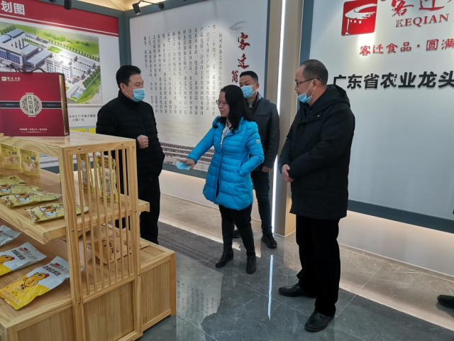 调研中,农村科技特派员团队与荔湾区驻梅县区驻镇帮镇扶村工作组组长杨海伟一行,前往梅州市客迁食品有限公司分析企业情况。