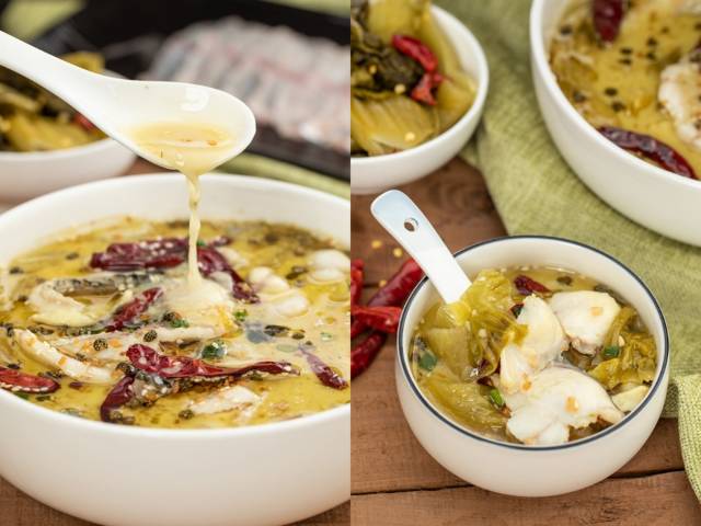 御鲜锋酸菜鱼,组合了顺德黑鱼片和中山黄圃酸菜,鱼肉厚薄均匀,入味而不碎,汤汁酸香鲜爽无腥味,金灿灿的汤汁搭配嫩白的鱼肉,食欲满满,纵享大口吃肉、大口嗦汤的快感。