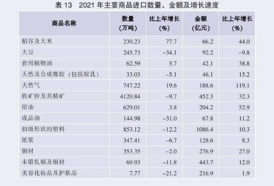 从主要进口商品的数量及增长速度来看,记者发现进口稻谷及大米数量的增长速度最快。2021年,全省进口稻米及大米230.23万吨,数量较上年增长77.7%;金额为66.2亿元,较上年增长44%。此外,从纵向的角度来看,进口稻谷及大米的数量将近翻了一番,由2019年的120.8万吨,增长到2021年的230.23万吨。