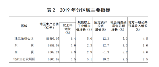 《统计公报》显示,分区域看,珠三角核心区(下称“珠三角”)地区生产总值占全省比重80.9%,东翼(下称“粤东”)、西翼(下称“粤西”)、北部生态发展区(下称“粤北”)分别占6.2%、7.0%、5.9%。