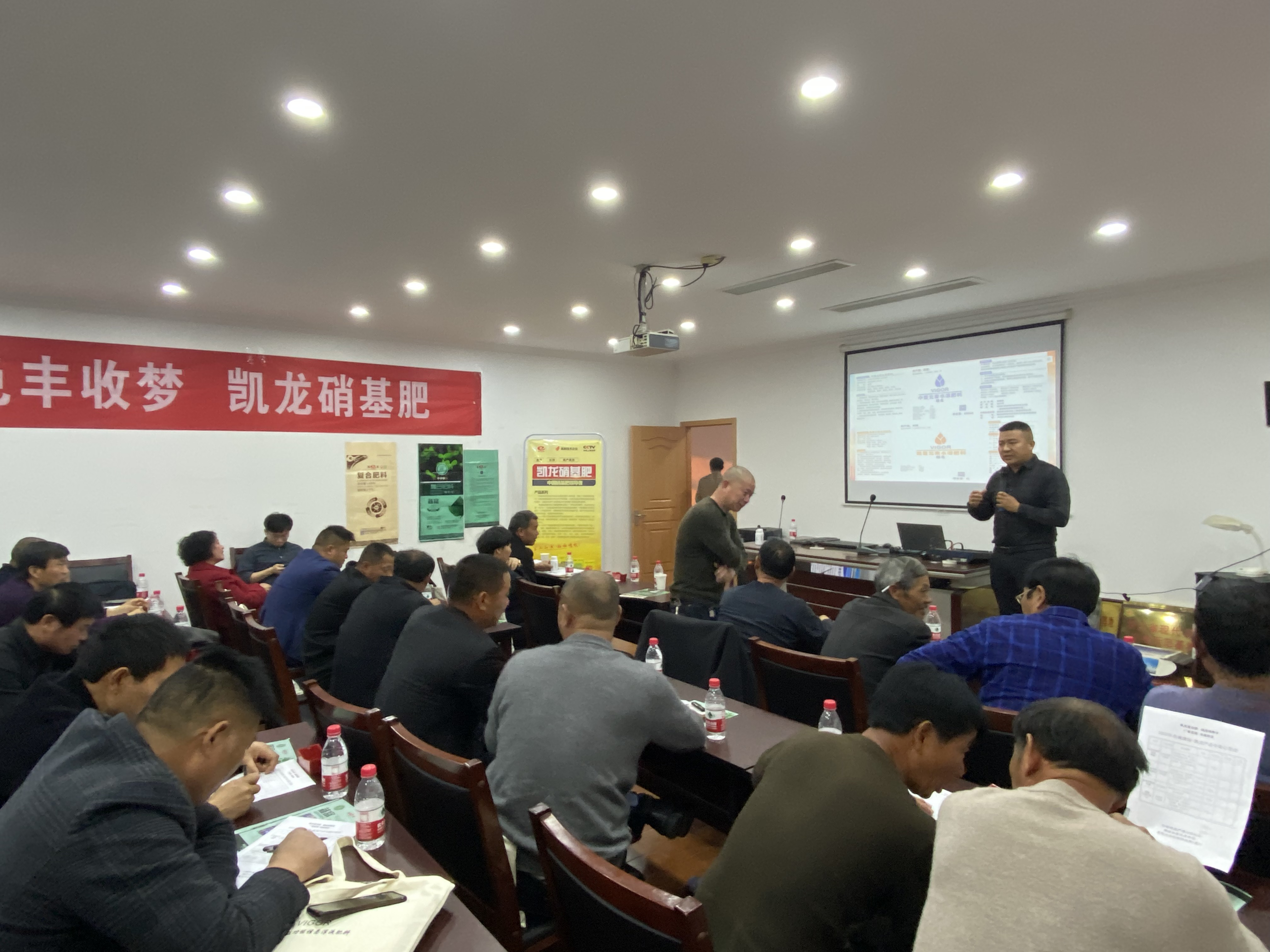 会议在大区经理对当前农资市场、春耕肥料市场宏观形势的预判演说中展开,区域总监传播凯龙楚兴化工产品的品质功效,市场运营部、智慧农业研究院讲师现场就作物病虫害防治、测土配方施肥、凯龙硝基肥使用等进行详细讲解,现场指导种植大户购买放心农资产品,解决好春耕农事活动困难问题。