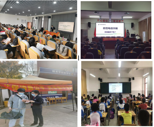 乐昌支行联合乐昌市第三小学围绕“防诈知识伴我行、畅享智能校园生活”,通过班级班会时间进行中小学生防诈知识宣讲、动漫视频播放等方式,以生动形象、简单明了地向广大中小学生宣传金融知识,并前往九峰镇中学,通过向在校学生派发风险提示单,帮助青少年提升对非法借贷机构、非法金融活动的甄别抵制能力。邮储银行城区支行分别前往韶关市老干部大学、韶关学院医学院、田家炳学校、周田小学进行本学期“开学第一课”,授课人员带领老年人和青少年学生一起学习了人民币知识普及、电信诈骗的案例以及你身边2021年最流行的七种诈骗手段等金融知识。课间还进行了金融知识有奖问答活动,加深老年人和青少年学生对所学知识的理解与运用,现场气氛热烈。