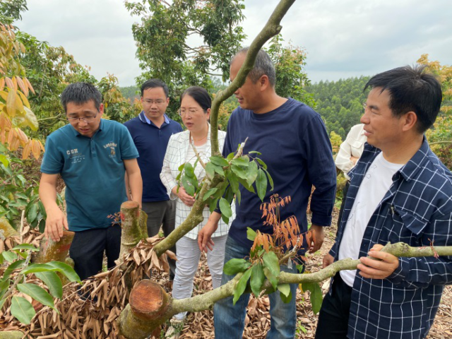 春季是荔枝开花坐果的关键时期,科学合理的管理能有效提高荔枝坐果的质量。3月14-16日,为推进高州市东岸镇优质荔枝品种改良工作,提升该地区荔枝品质,提高果农栽培技术水平,促进本地区荔枝产业高质量可持续发展,由广东省农村科技特派员、广东省农科院果树研究所副研究员蒋侬辉、省农科院茂名分院办公室主任赖旭辉及茂名市农业农村电子商务协会秘书长朱倩莹等专家组成帮扶团队,到高州市东岸镇开展荔枝高接换种及配套栽培技术指导工作。