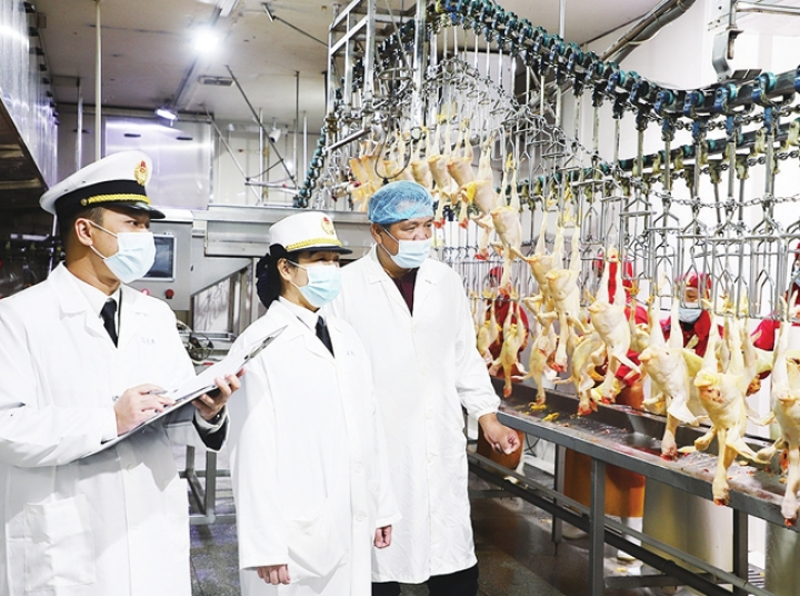 工作人员对汇先丰的冰鲜禽肉开展现场查验 刘鹏 摄
