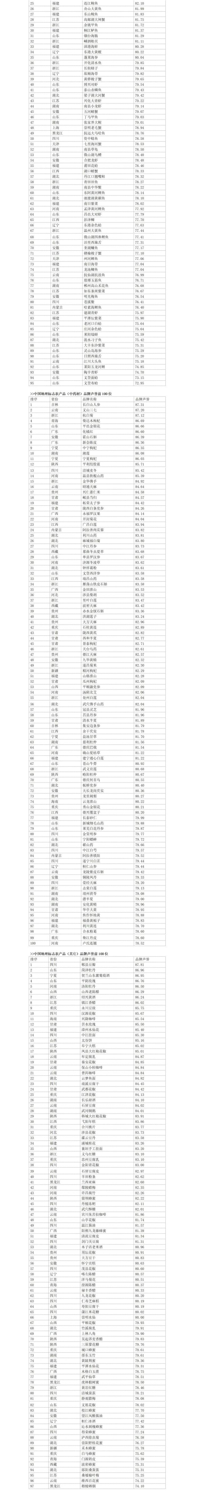 报告显示,来自广东省的凤凰单丛茶、化橘红、新会陈皮、英德红茶和德庆贡柑等进入了中国地理标志农产品品牌声誉榜前100位。榜单具体如下:
