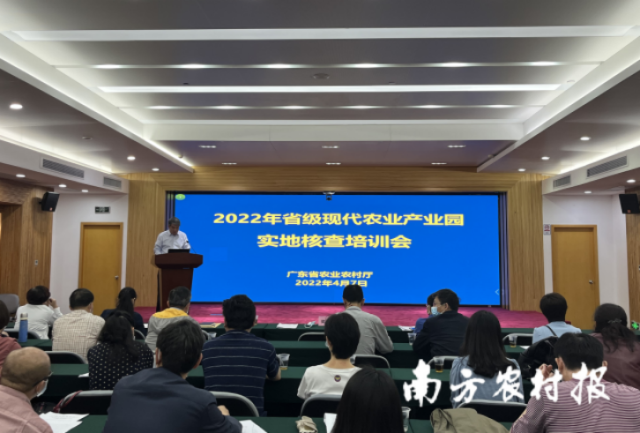 4月7日,广东省农业农村厅举办2022年广东省级现代农业产业园实地核查培训会,对专家进行培训,开始实地核查2022年申报入库的特色和功能性产业园。