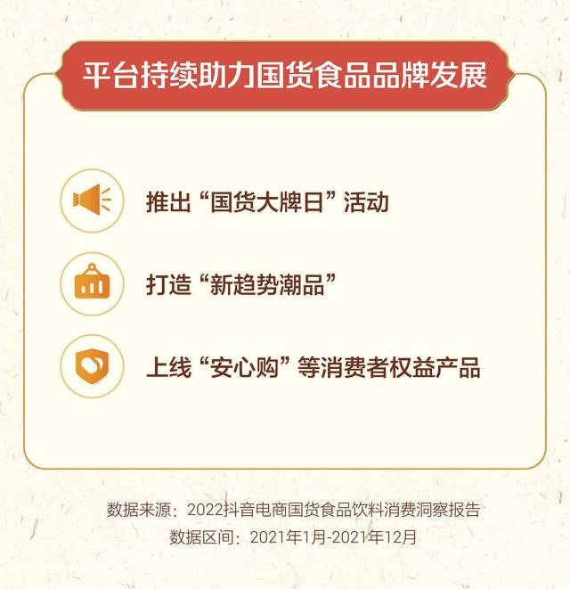 抖音电商还注重提升售后保障服务,制定商家服务考核规范,提升商家售后服务能力。如建立价格保护机制,上线“安心购”等消费者权益产品,通过一系列政策,助推国货食品消费。