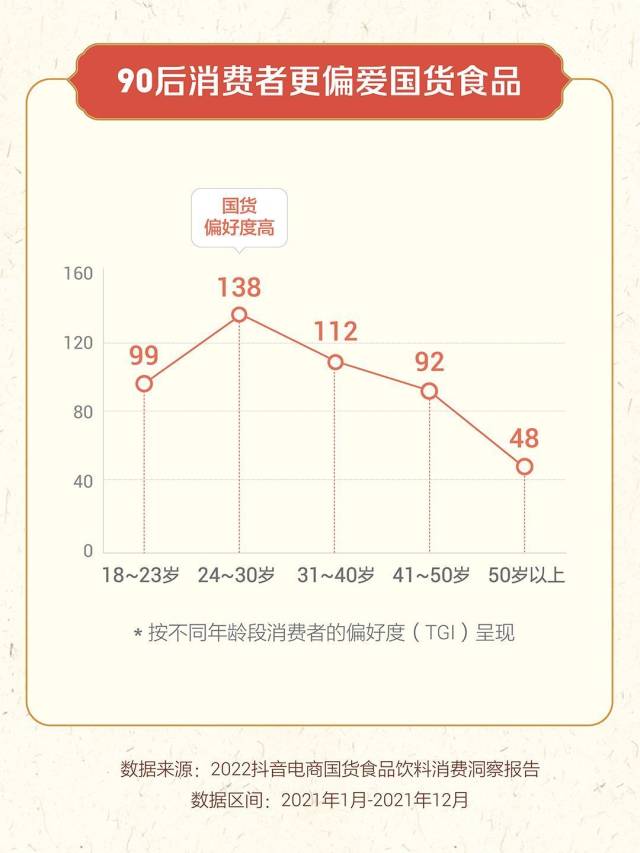 4月11日,抖音电商发布《2022国货食品饮料消费洞察报告》(下称报告),报告显示,平台国货食品饮料消费持续升温,销量同比上涨547%。同时,平台国货食品消费呈现年轻化、休闲化的特点,90后消费者更偏爱国货食品。在兴趣电商助力下,地方国货食品品牌频繁“出圈”,受到消费者喜爱。国货食品品牌不断推陈出新,在满足消费者多样化需求的同时,也带来了新的增长机遇。