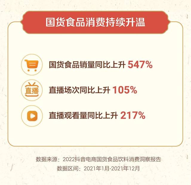抖音电商相关负责人表示,直播电商为国货食品行业的转型升级注入了新的发展动力。随着国人文化自信的逐渐提升,“国货”正逐步融入年轻消费者的行为与消费理念之中。未来,抖音电商将继续发挥兴趣电商优势,助力消费市场持续升级,给更多的国产食品品牌带来新的增长机遇,为消费者提供更多优质国货商品。