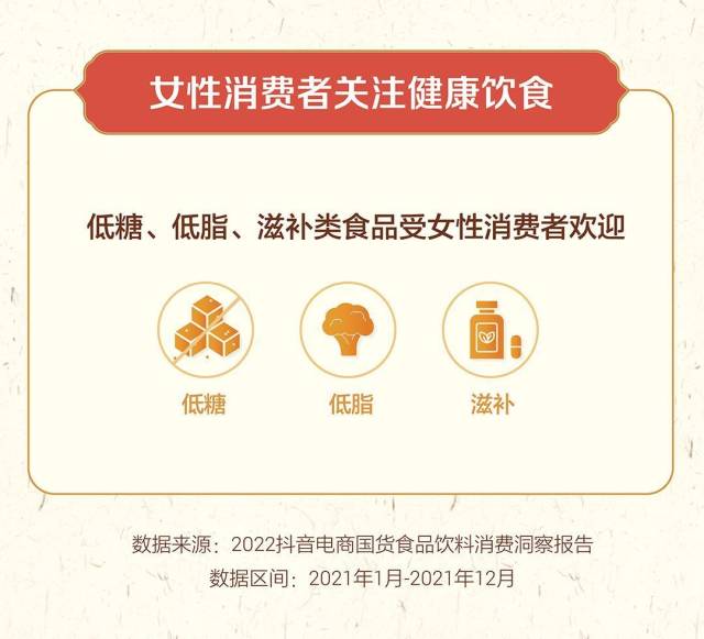 平台国货食品消费中,女性消费者占比70%,男性消费者占比30%,女性消费者关注健康饮食,低糖、低脂、滋补类食品受女性消费者青睐。
