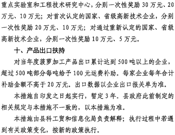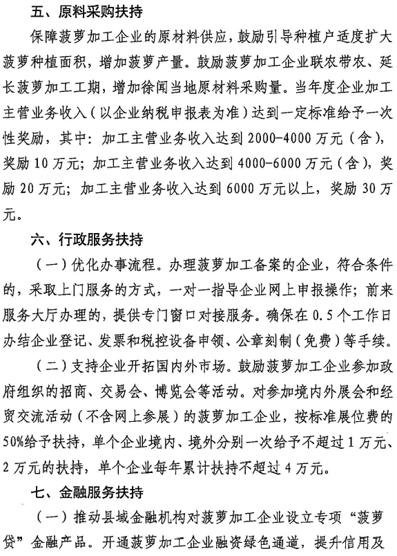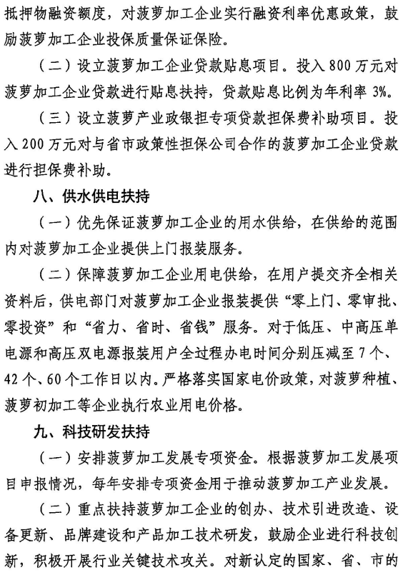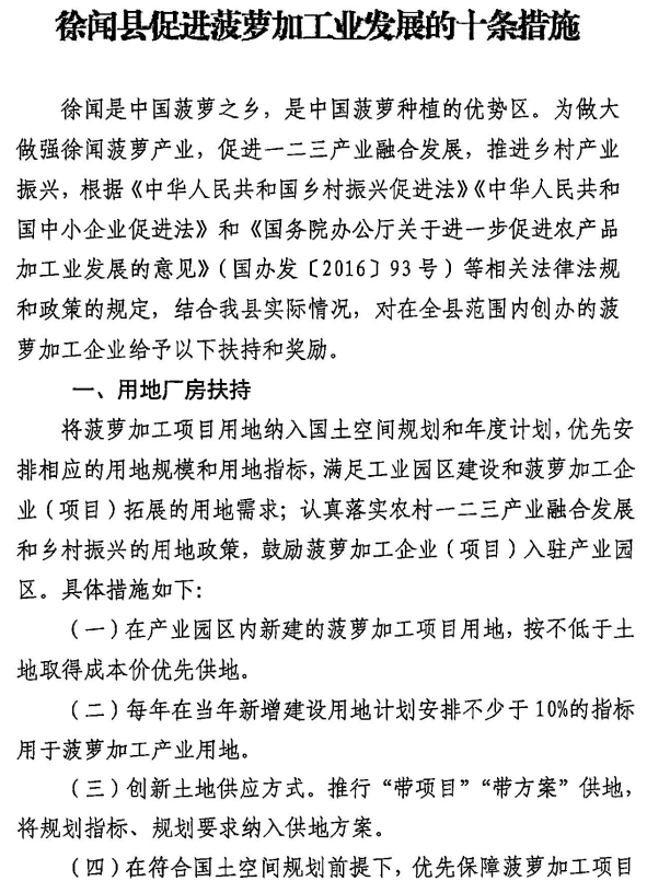 附:徐闻县促进菠萝加工业发展的十条措施