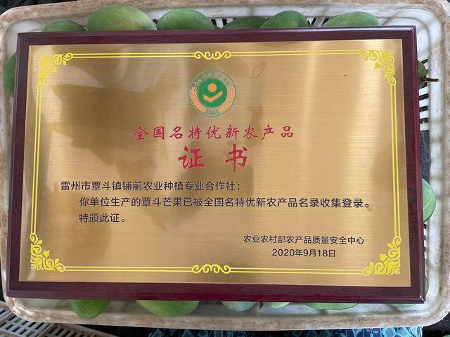 大规模的种植面积和优质的出品,也让铺前村获得了“覃斗芒果种植示范基地““全国名特优新农产品”等荣誉。