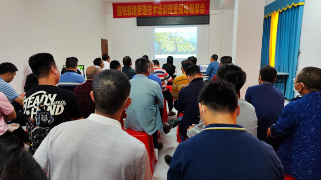 为此,当天的培训班上,博罗县农业农村综合服务中心特别邀请了惠州学院曾令达副教授为各位荔枝种植大户详细交接了荔枝高接换种技术。
