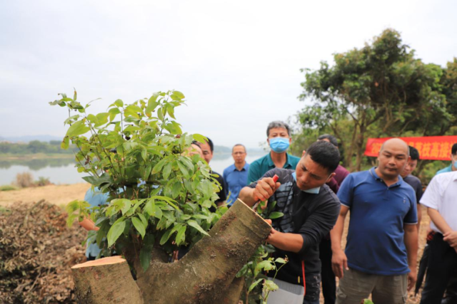 为让学员们能快速学以致用,当天的培训还组织了嫁接现场观摩会,博罗县雅时园荔枝稀有品种农民专业合作社负责人陈伟清根据多年荔枝种植、嫁接的实践经验,现场就如何挑选枝干、修枝整形、选接位、做接口、切接穗、放接穗、绑带固定和露苗管理等关键环节,逐一进行深入浅出地详细讲解,将嫁接方法向参加培训的学员进行示范操作,并现场解答荔枝种植户学员在荔枝嫁接过程中遇到的难点问题。