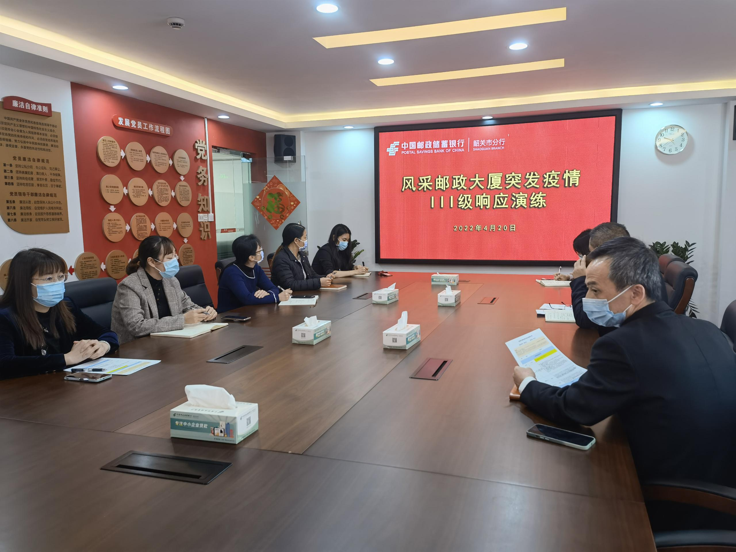 2022年4月19日清晨,一名在风采邮政大厦工作的邮储银行韶关市分行员工被诊断为新冠确诊病例。接到涉疫情况报告后,经邮储银行韶关市分行疫情防控工作领导小组研究决定,立即启动风采邮政大厦突发疫情Ⅲ级响应,4月20日上午起对风采邮政大厦封控管理,下午安排风采邮政大厦各部门应急的居家办公人员前往应急办公场地,正常开展工作。