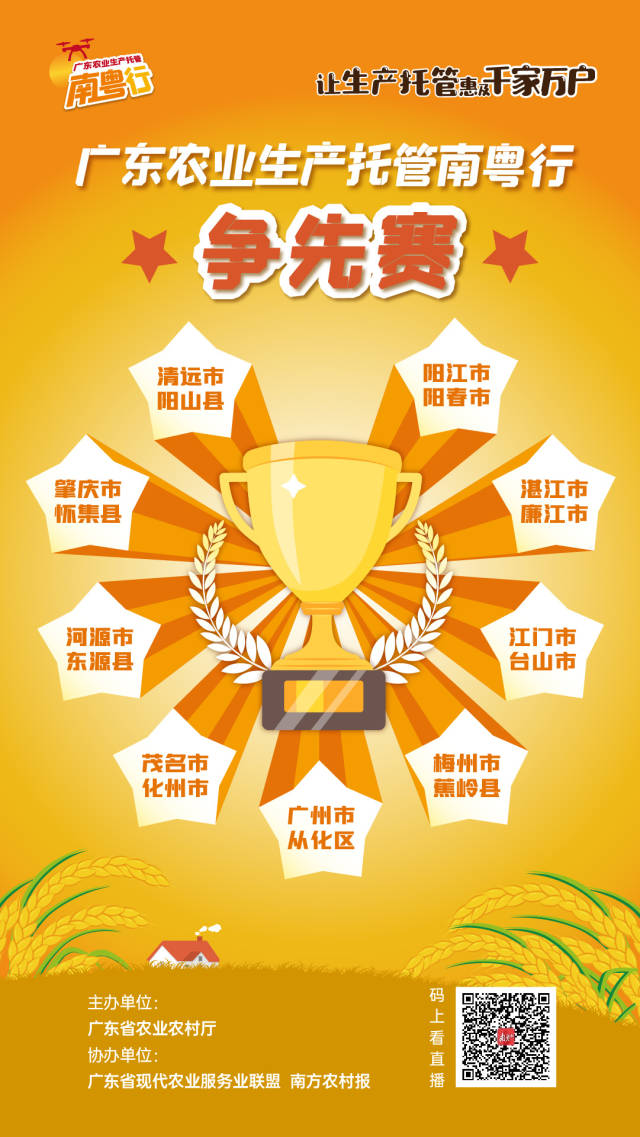 广东农业生产托管南粤行争先赛于4月15日开启报名,吸引全省县(市、区)11个地市20个县(市、区)参与。