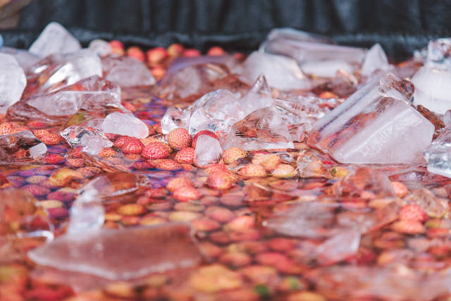 速冻长期保鲜果实要经精选→清洗→烫漂杀菌护色处理后,速冻至-20℃以下,然后在-20℃至-40℃的冻温下贮藏。但荔枝果实解冻后的褐变、风味损失及出现“锈水”问题至今仍未获得有效解决,因此应用有很大的局限性。但这一方案适用于深加工的荔枝原材料贮藏,解冻时采取热水中加防褐食品添加剂烫漂可一定程度的减缓褐变和风味损失问题。