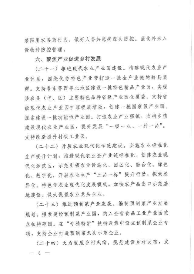 《实施意见》将2022年广东全面推进乡村振兴重点工作分为10个方面,共39项。其中,在第六个方面“聚焦产业促进乡村发展”,第23项措施提出,推进预制菜产业发展。