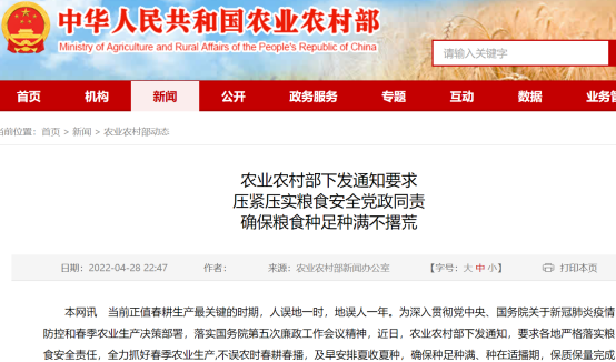 人误地一时,地误人一年,当前正值春耕生产最关键的时期。据农业农村部网站4月28日消息,近日,农业农村部下发通知,要求各地严格落实粮食安全责任,全力抓好春季农业生产,不误农时春耕春播,及早安排夏收夏种,确保种足种满、种在适播期,保质保量完成全年粮食播种任务。