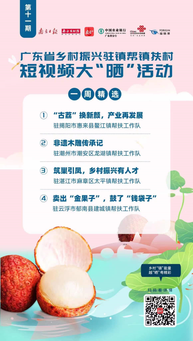 以“乡村‘镇’能量,越‘晒’粤精彩”为主题的广东省乡村振兴驻镇帮镇扶村短视频大“晒”活动于2022年2月全面启动。活动在南方+APP开辟专区,鼓励各驻镇帮扶工作队比“晒”行动做法、成效亮点、实事好事。主办方每周将精选出部分优秀参“晒”作品进行展播。无论是晒工作经验做法,还是秀驻镇风采人物趣事,均有机会上榜驻镇帮镇扶村短视频大“晒”一周精选,敬请垂注!