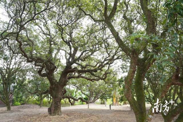 漫步在绿林中,荔枝古树浓荫蔽日,古朴幽深。武馆园是禄段古荔园的三大园区之一,地处禄段村、妙义村,环境僻静,古树丛生。微风吹拂下,树叶窸窣,当年人们在禄段古荔园内习武的声音仿佛回荡在耳畔。