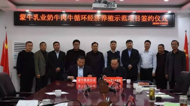 2019年11月22日,蒙牛乳业奶牛肉牛循环经济养殖示范项目签约仪式在科左中旗举行。该项目拟投资6亿元,分三期建设存栏1万头荷斯坦奶牛牧场和存栏1万头西门塔尔奶肉兼用牛牧场2个万头牛规模养殖场,和标准化牛舍、现代化挤奶厅、10万吨饲料生产车间、10万吨有机肥生产车间、生物菌培育中心、1000头良种牛繁育中心等配套及附属设施。