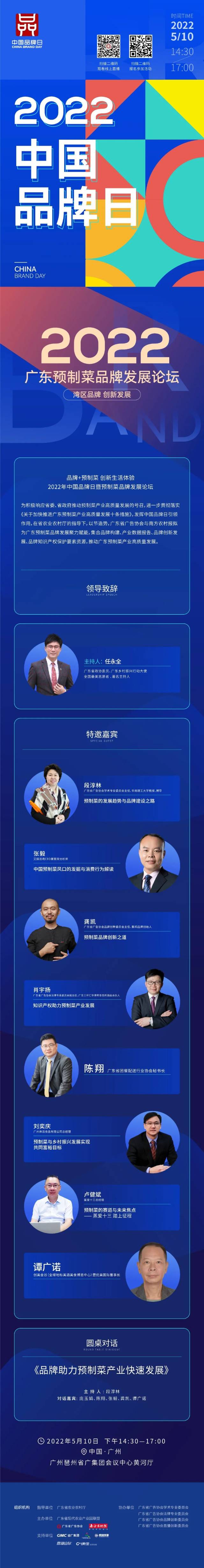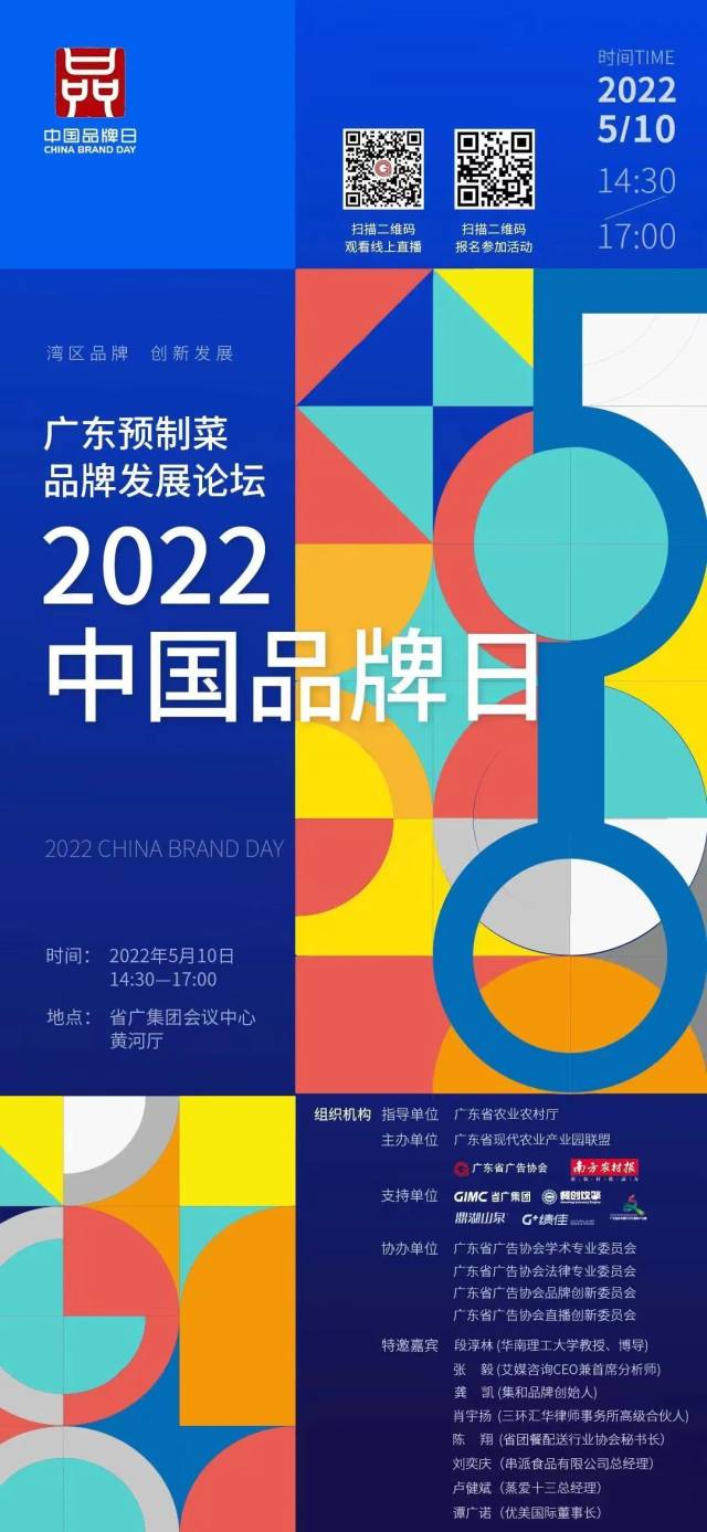 精英齐聚羊城,共话行业发展。5月10日,在中国第六个中国品牌日降临之日,以“湾区品牌 创新发展”为主题的2022广东预制菜品牌发展论坛将在广州琶洲省广集团会议中心举办。