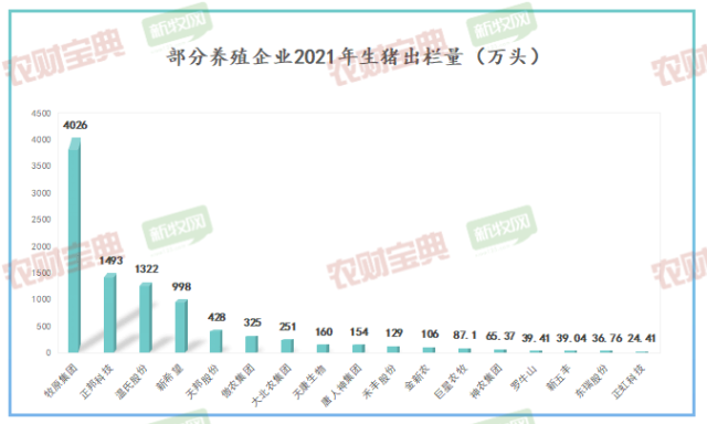 首先,我们来看17家上市巨头2021年的生猪出栏量。17家企业出栏近1亿头猪,占去年全国总出栏量的15%左右。