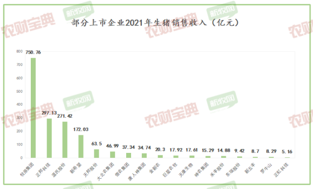 《农财宝典》新牧网记者整理17家上市猪企2021年的生猪业务营收情况,牧原股份毫无疑问夺得生猪销售收入第一名,销售额达750.76亿元。生猪板块营收超100亿的还有正邦科技、温氏股份、新希望等企业。