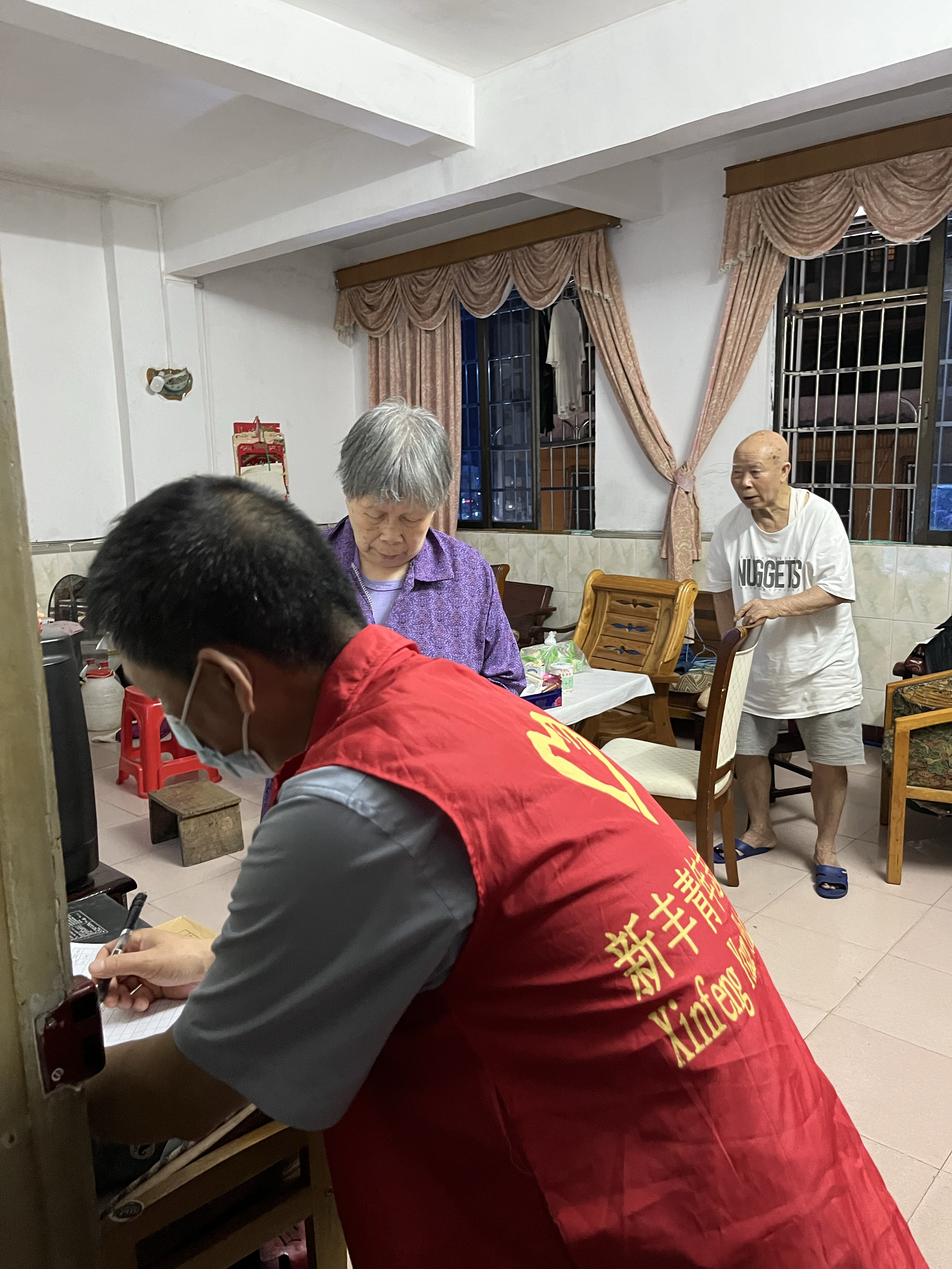 新丰县支行员工志愿者队伍迅速集结,闻令而动。为配合当地的防疫政策,新丰县支行员工志愿者队伍在白天坚守在金融一线岗位上,利用晚上空余时间深入防疫一线走访社区,挨家挨户敲门,热心登记排查。在敲门入户排查过程中,新丰县支行志愿者队伍为行动不便的老人登记疫苗接种实况,切实为群众排忧解难,群众们纷纷为邮储银行新丰县支行积极投身疫情防控的行为点赞。