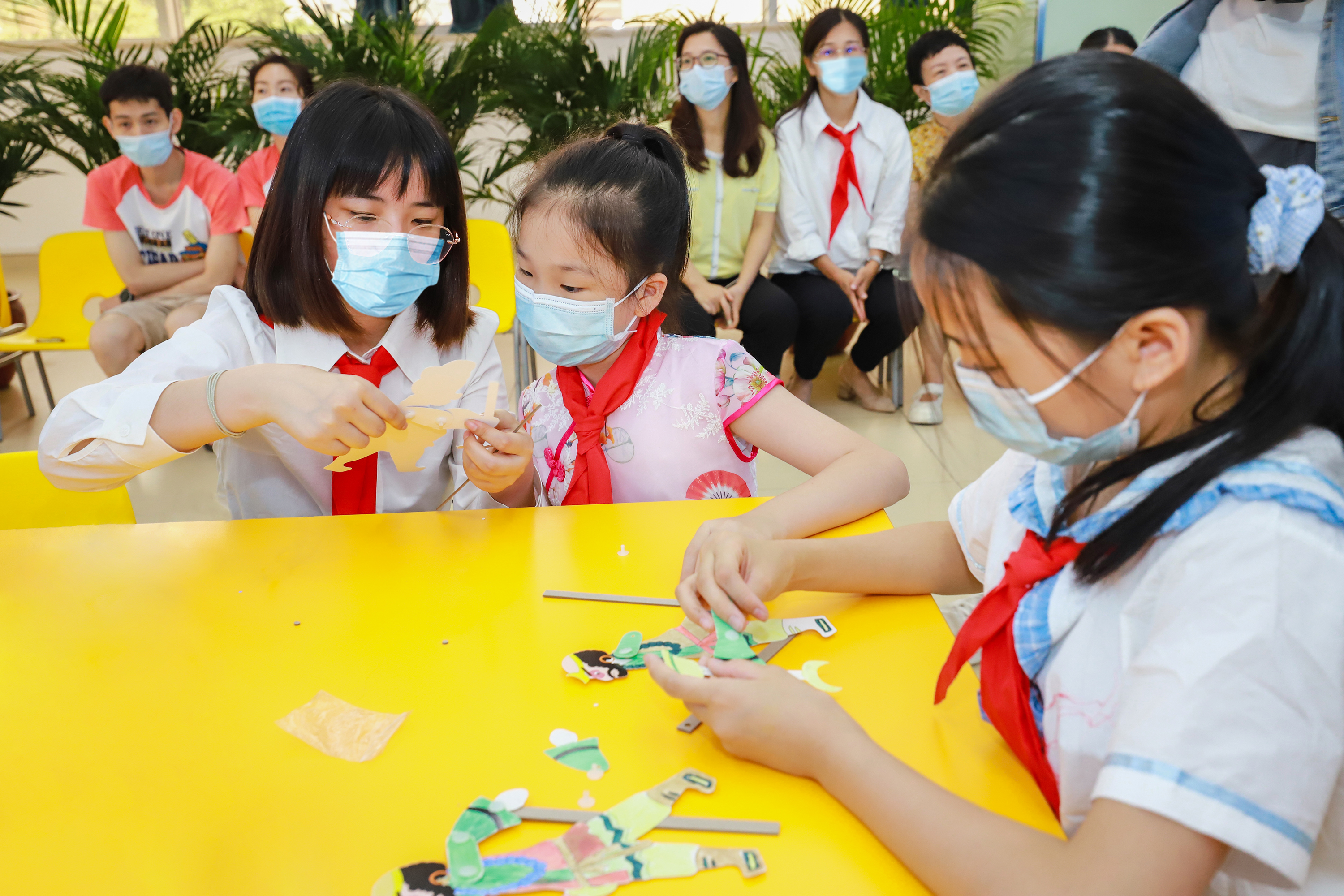 今年是家庭教育促进法正式实施的第一年。当日,现场举行亲子嘉年华活动,通过互动问答、专家微访谈、亲子共读、红色故事宣讲、亲子互动游戏等形式,推进家庭教育促进法的宣传普及和贯彻落实,培育文明和谐良好家风,促进未成年人健康成长。最受孩子欢迎的嘉年华活动是皮影道具制作。皮影是“皮影戏”的简称,又称“灯影戏”,是集文学、音乐、美术与表演于一体的传统的综合民间艺术。在家长的帮助下,孩子们完成了皮影道具“孙悟空”的制作。