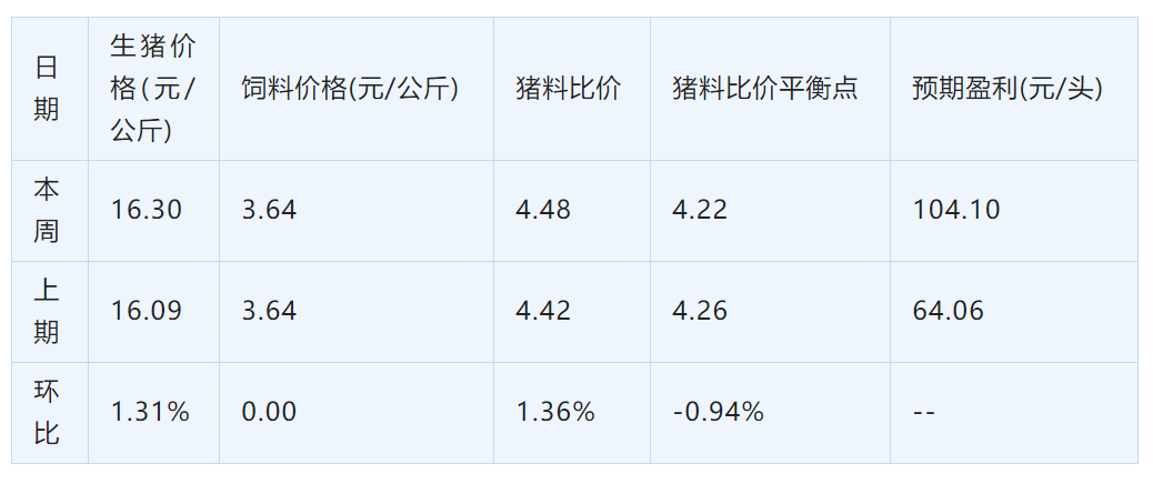3、猪料比价是指生猪价格与饲料价格的比值