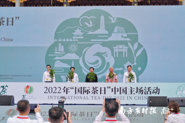 2022年“国际茶日”中国主场活动开幕式现场举办了“全球云上茶会”,联动国际茶叶组织、商协会代表以及国内56个民族以录制视频的形式在“云”上“相聚”,共享茶香。