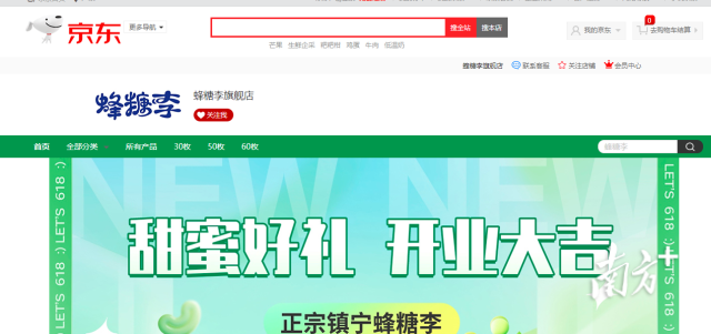 2:在京东搜索店铺“蜂糖李旗舰店”