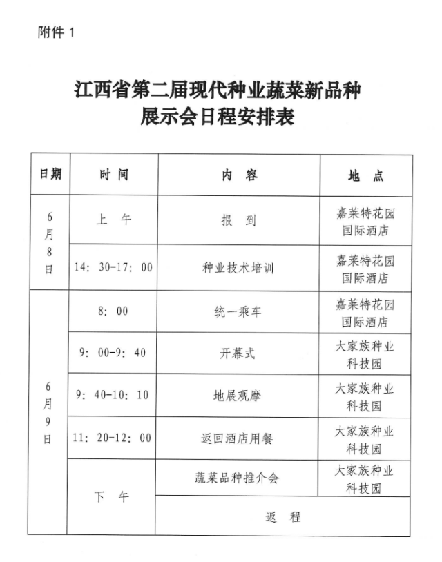 1、《江西省第二届现代种业蔬菜新品种展示会日程安排表》