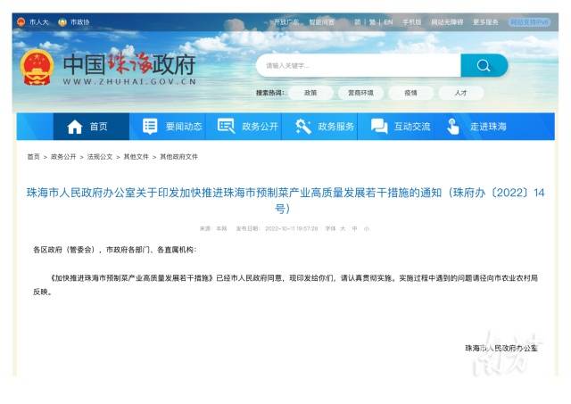 【珠海】力争3年后产值突破300亿元!珠海出“十招”支持预制菜产业发展
